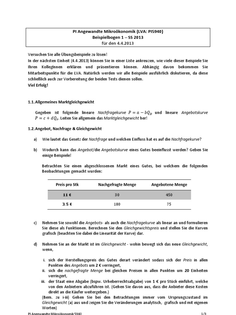 Uebungsbeispiele Mikrooekonomik 1
