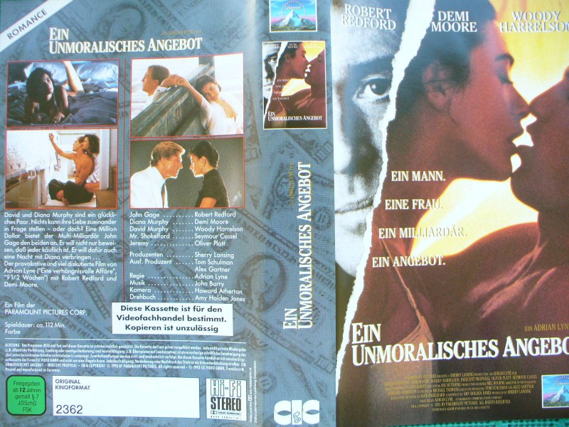 Ein Unmoralisches Angebot Robert Redford Demi Moore Kaufen
