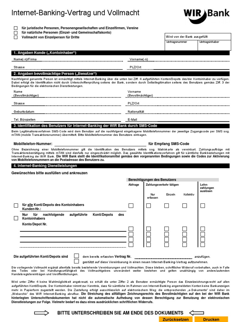 Internet Banking Vertrag Internet Banking Mit Vollmacht