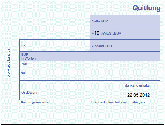 Eine quittungsvorlage ist sehr hilfreich wenn sie regelmäßig quittungen ausstellen müssen. Der netto preis in euro der gesamt preis nach der verrechnung mit der mehrwertsteuer der betrag in worten sowie die namen der geschäftspartner. Füllen sie die quittungsvorlage sorgfältig aus damit die gesetzlichen mindestanforderungen erfüllt sind. Grundsätzlich sind sie nach deutschem recht 368 bgb verpflichtet den erhalt einer leistung im allgemeinen den erhalt der forderung zu bestätigen.