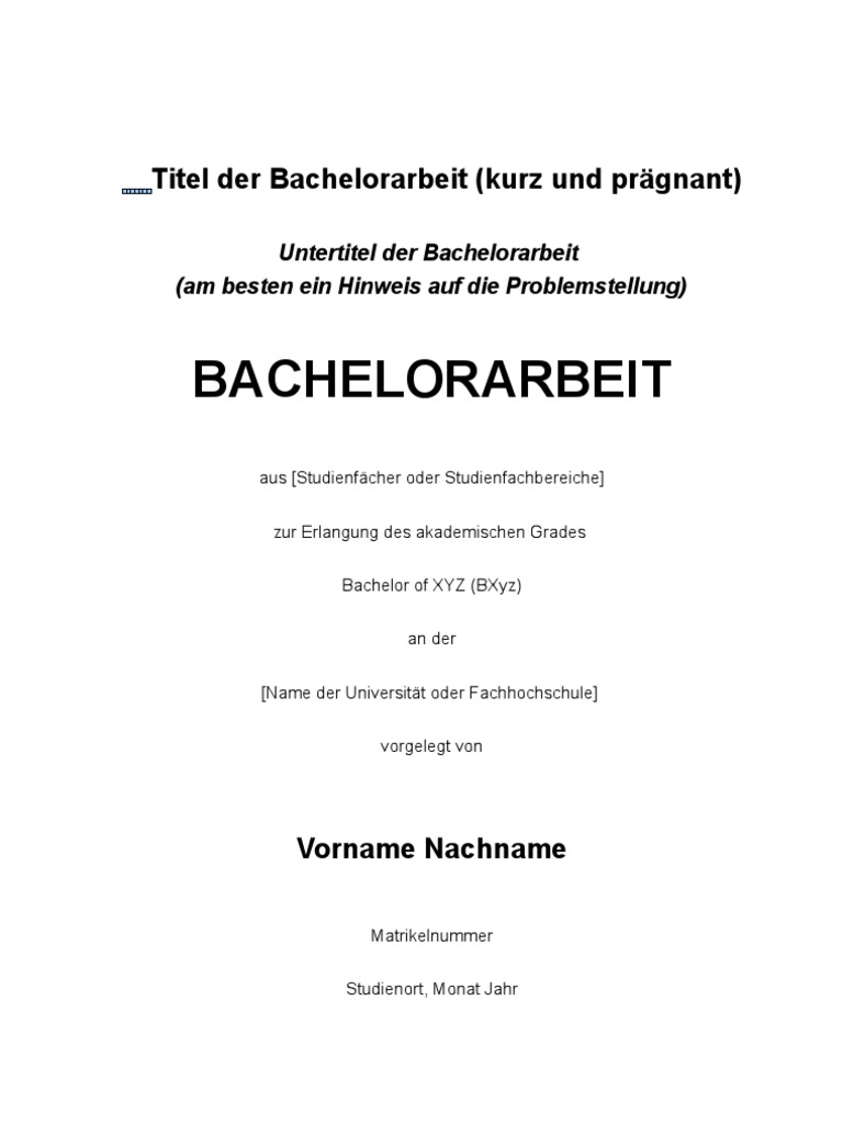 Gestaltung Und Inhalt Des Deckblattes Einer Bachelorarbeit