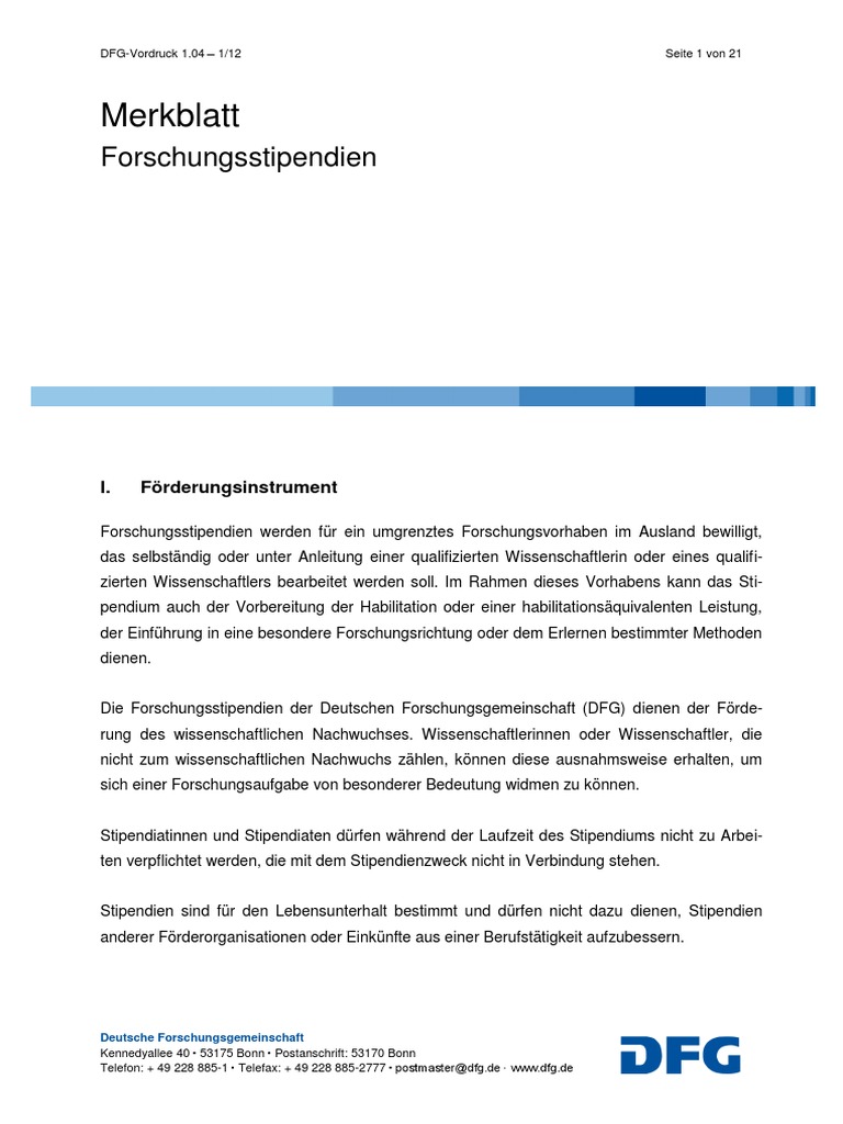 Dfg Ergänzendes Merkblatt Mit Leitfaden Dfg Vordruck 14 Seite 1
