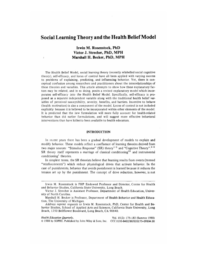 Rosenstock Strecher Becker 1988 Social Learing Theory And