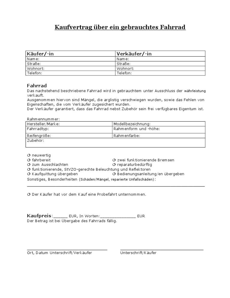Kaufvertrag fahrrad. Das muster gibt es sowohl als pdf datei als auch als word dokument. Weiterverkauf eines gebrauchten fahrrades zwischen zwei privat personen sollte ein kaufvertrag abgeschlossen werden. Infos zum rücktrittsrecht beim autokauf wann der rücktritt möglich ist lesen sie hier. Llll alles zum thema rücktritt vom kaufvertrag fürs auto inkl.