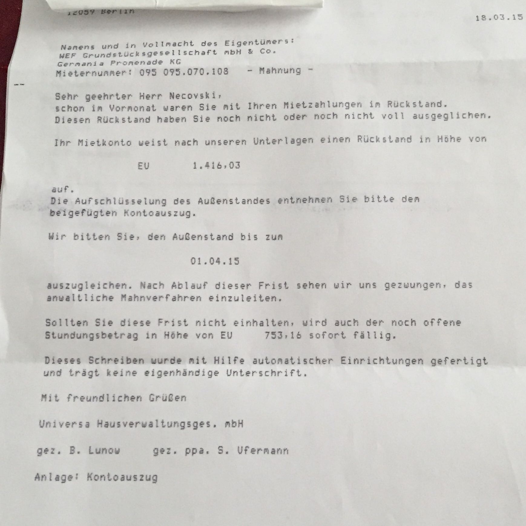 Mieter die die miete nicht nicht pünktlich oder nicht vollständig zahlen sind für vermieter ein großes ärgernis. Diese regelung stellt eine gesetzliche fälligkeitsbestimmung dar was zur folge hat dass der mieter am 4. Aktuelle urteile zu themen wie forderungen fristen inkasso pfändung insolvenzen und mahnwesen. Hier findest du eine vorlage für deine 2.