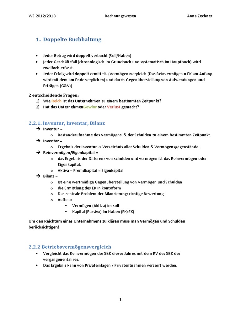 Zusammenfassung Rechnungswesen Pdf