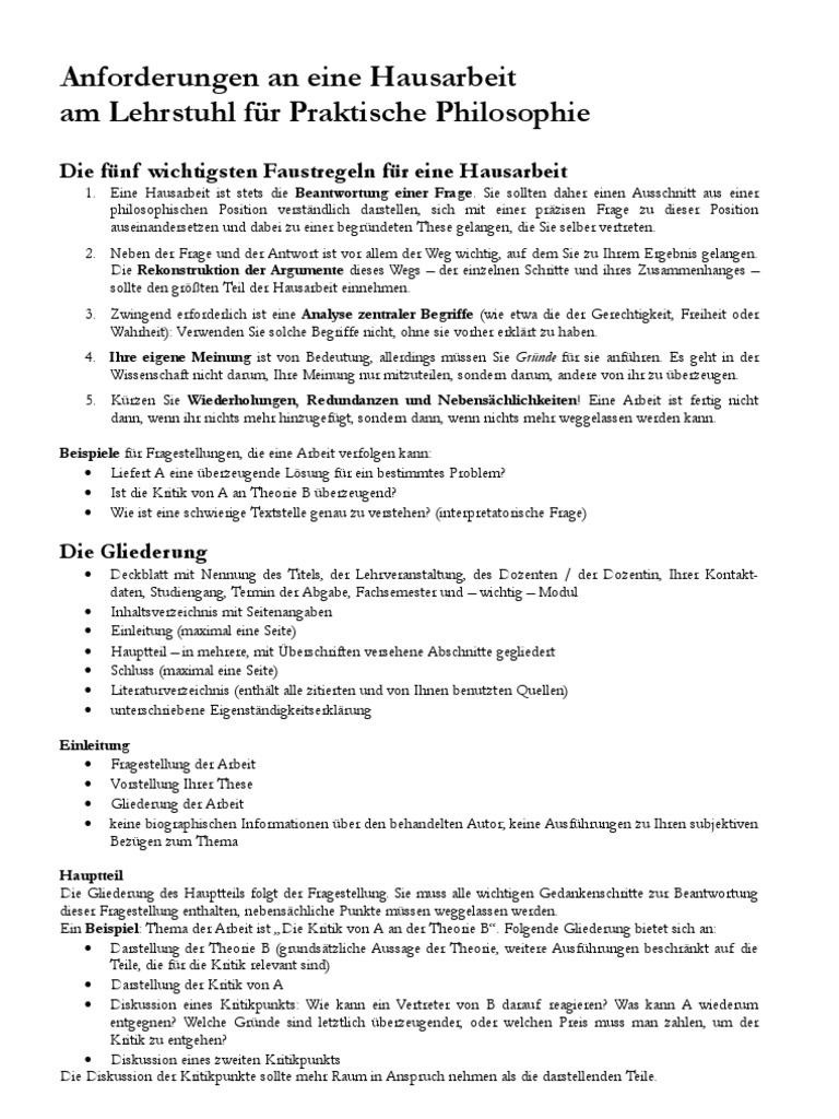Anforderungen An Eine Hausarbeit