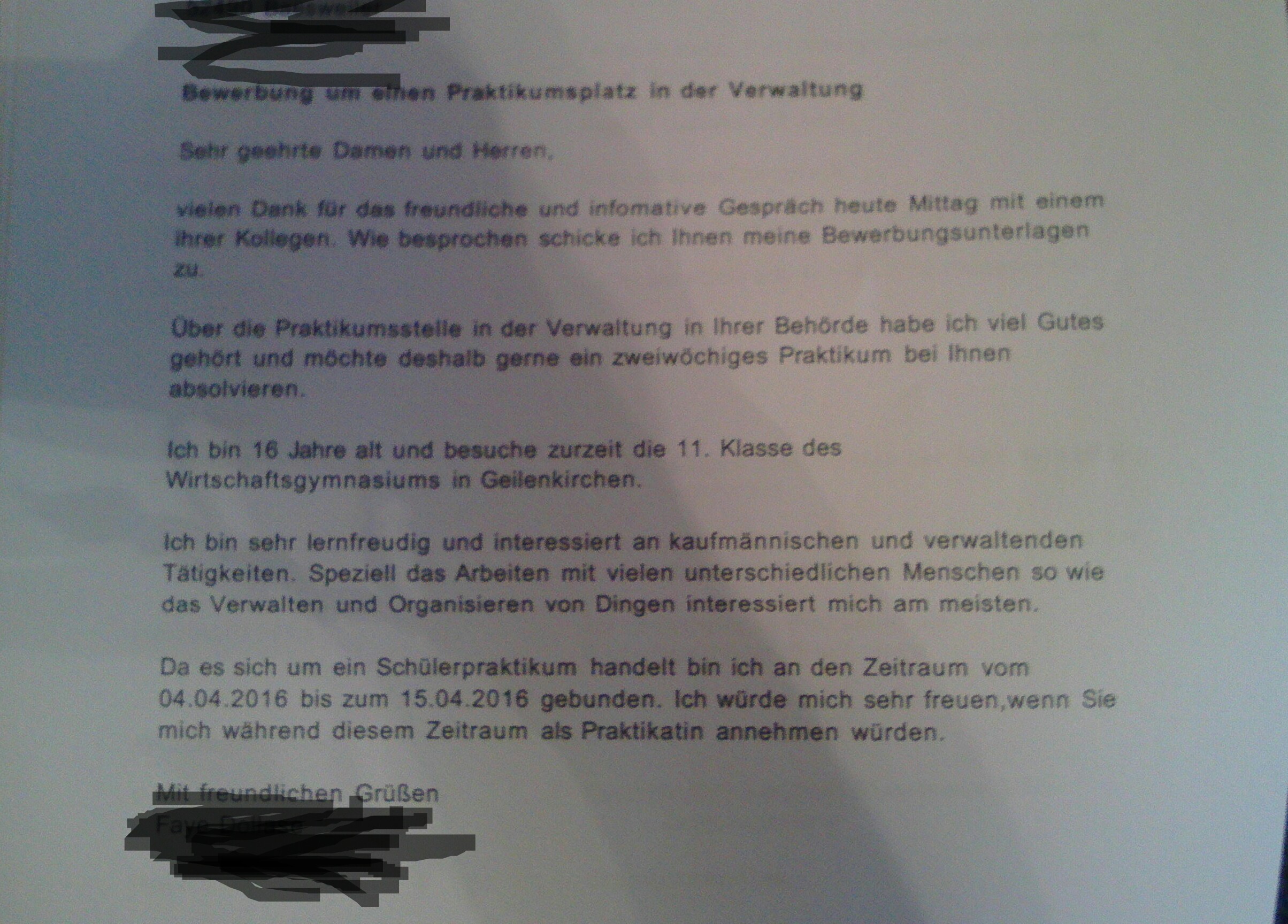 Wie schreibt man ein bewerbungsschreiben für ein schülerpraktikum. Xxx zu hand schreibt man nicht mehr. Bewerbungstipps rund um lebenslauf bewerbungsschreiben motivationsschreiben e mail und initiativbewerbung praktikum muster vorlagen zum download. Hallo muss man bei der gks in obertshausen für die einjährige höhere berufsfachschule einen einjähriges betriebspraktikum. Diese seite informiert über den inhalt des gesamten praktikumsberichts mit seitenangaben.